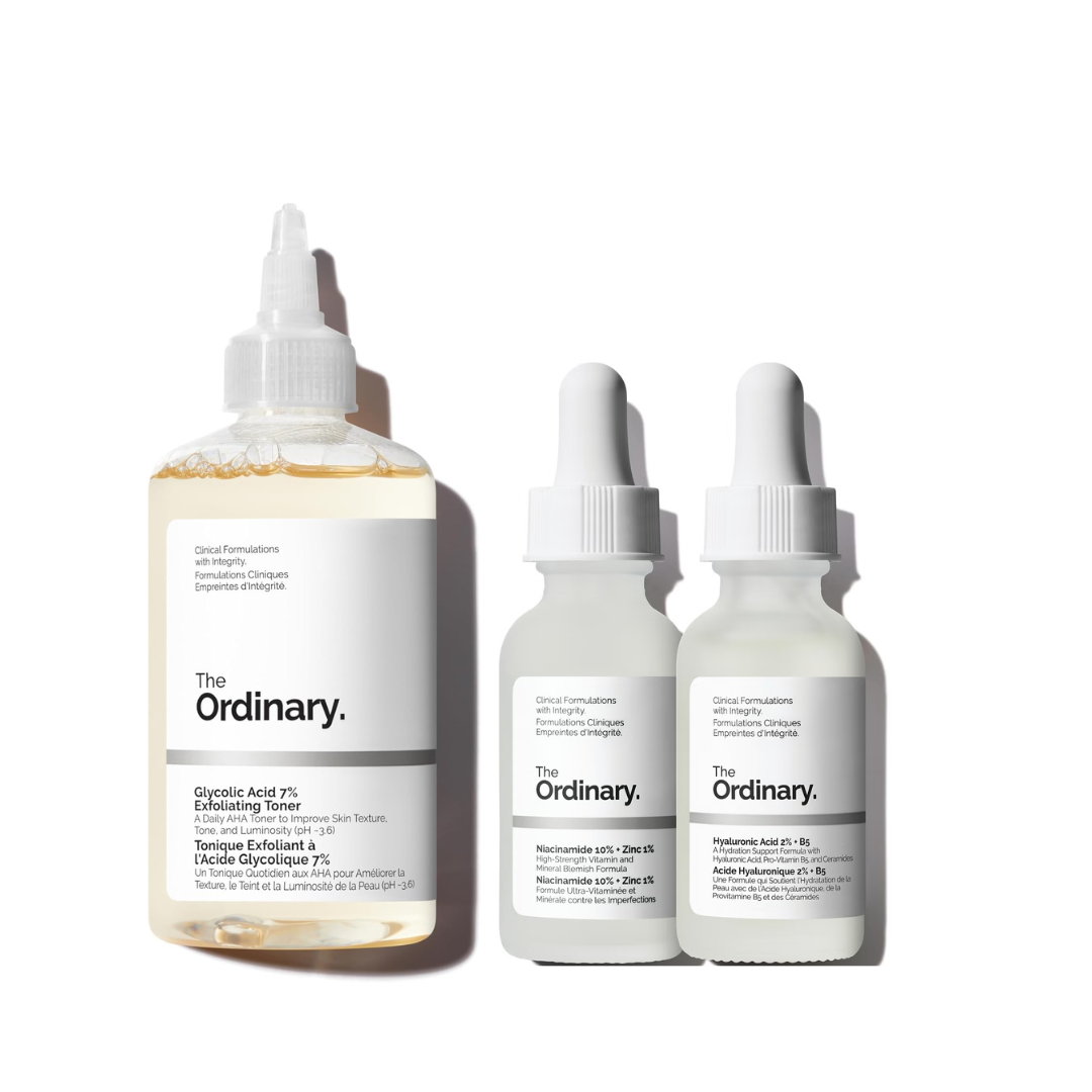 بكج الاشراقة  من ذا أورديناري هو الحل العملي لبشرة نضرة ومتوازنة بخطوات بسيطة وسعر مناسب. مثالي لكي إذا كانت بشرتك تعاني من اللمعان الزائد أو البقع أو الجفاف السطحي.