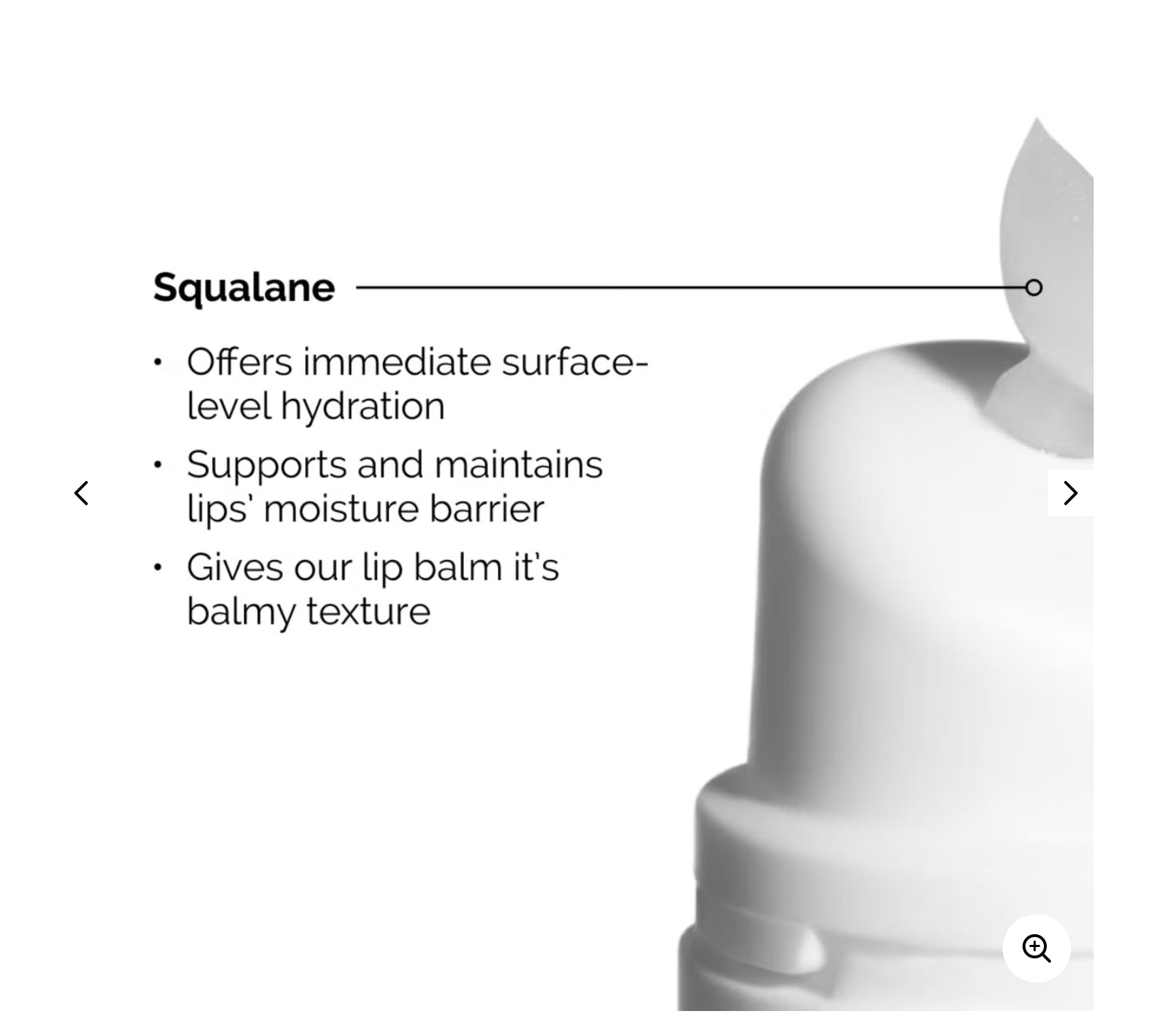 • السكوالين: مكوّن مرطّب مستخلص من مصادر نباتية يحبس الرطوبة داخل الشفاه ويمنع الجفاف والتشقق.