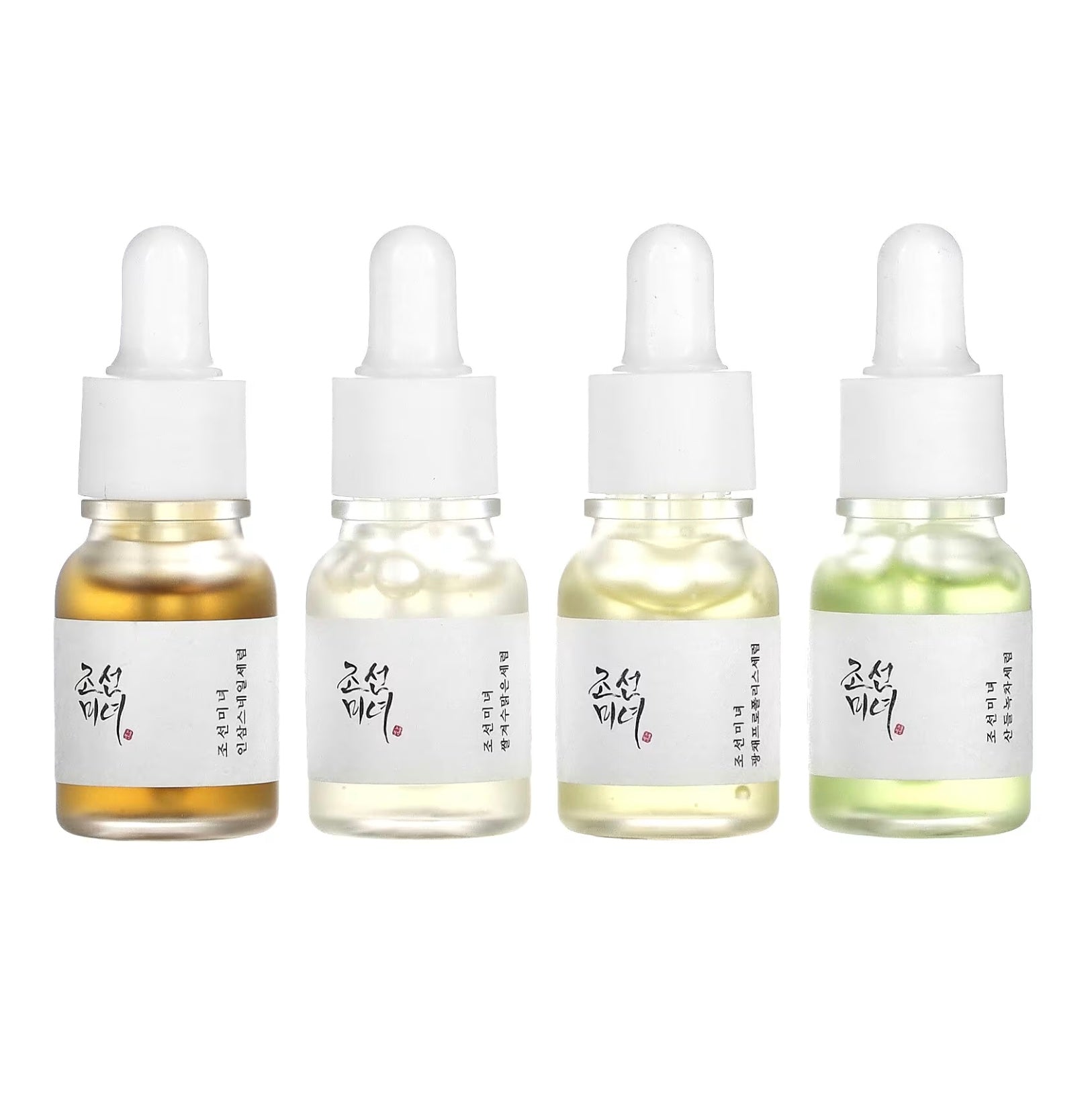 فهي عبارة عن مجموعة صغيرة بحجم 10 مل تحتوي على 4 أنواع من الأمصال، حتى تبدأين من اختيار أي منها وفقا لنوع بشرتك أو اقتصادِ. يمكنك الدخول في تجربة واسعة النطاق للمركبات المناسبة لك قبل استخدام زجاجة كاملة الحجم!