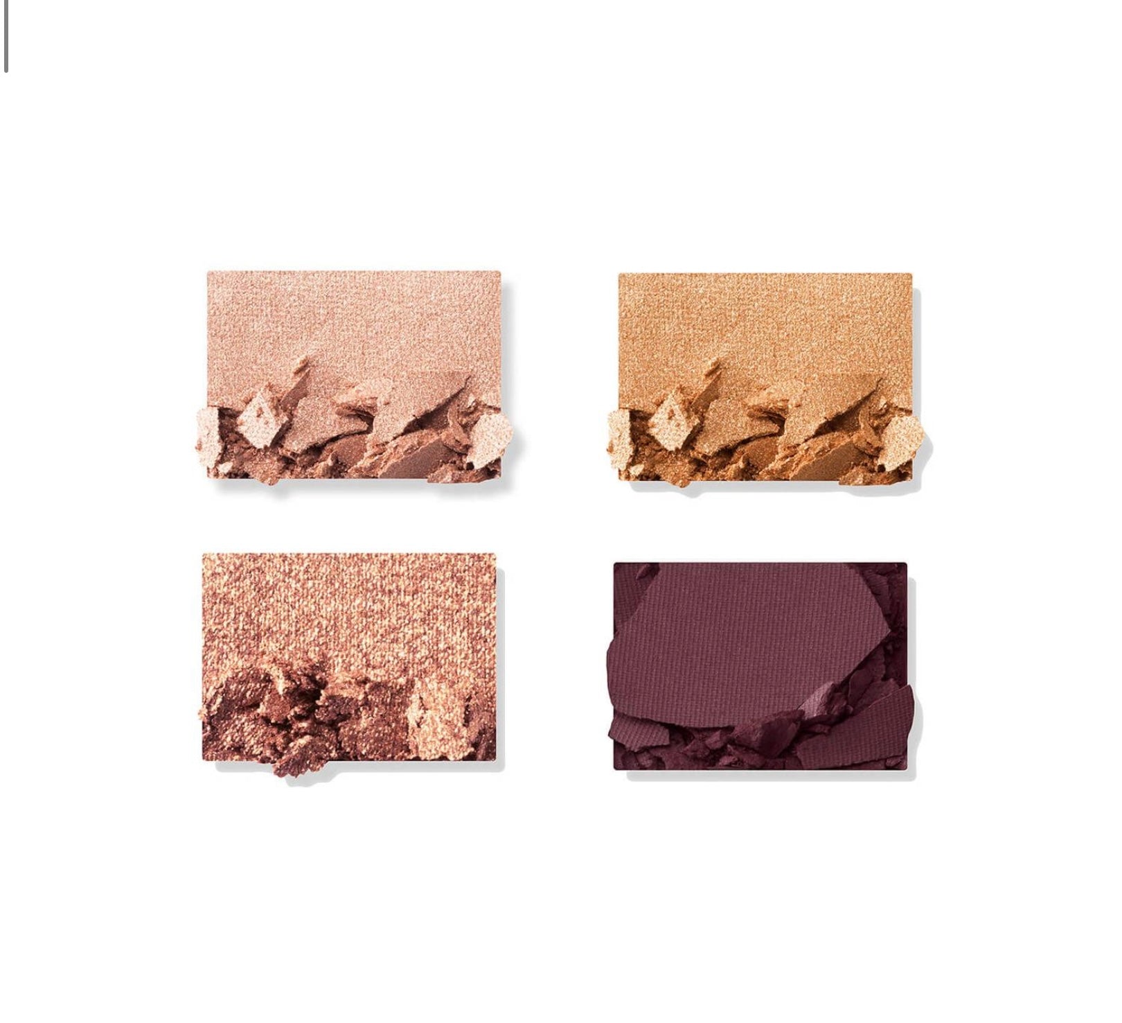 Create a golden glow with this eyeshadow palette, starring four beautifully buttery, matte, shimmer and glitter hues in champagne, sunset gold, glowing copper and rich plum. Whether you're an eye make up aficionado or only just beginning to experiment, this palette is packed with four easy-to-follow steps, so you can be your own MUA. Housed in a compact sleek design with an essential mirror, this nifty palette amps up your look whether you're on-the-go or in a rush. What are you waiting for? Get your glow on!