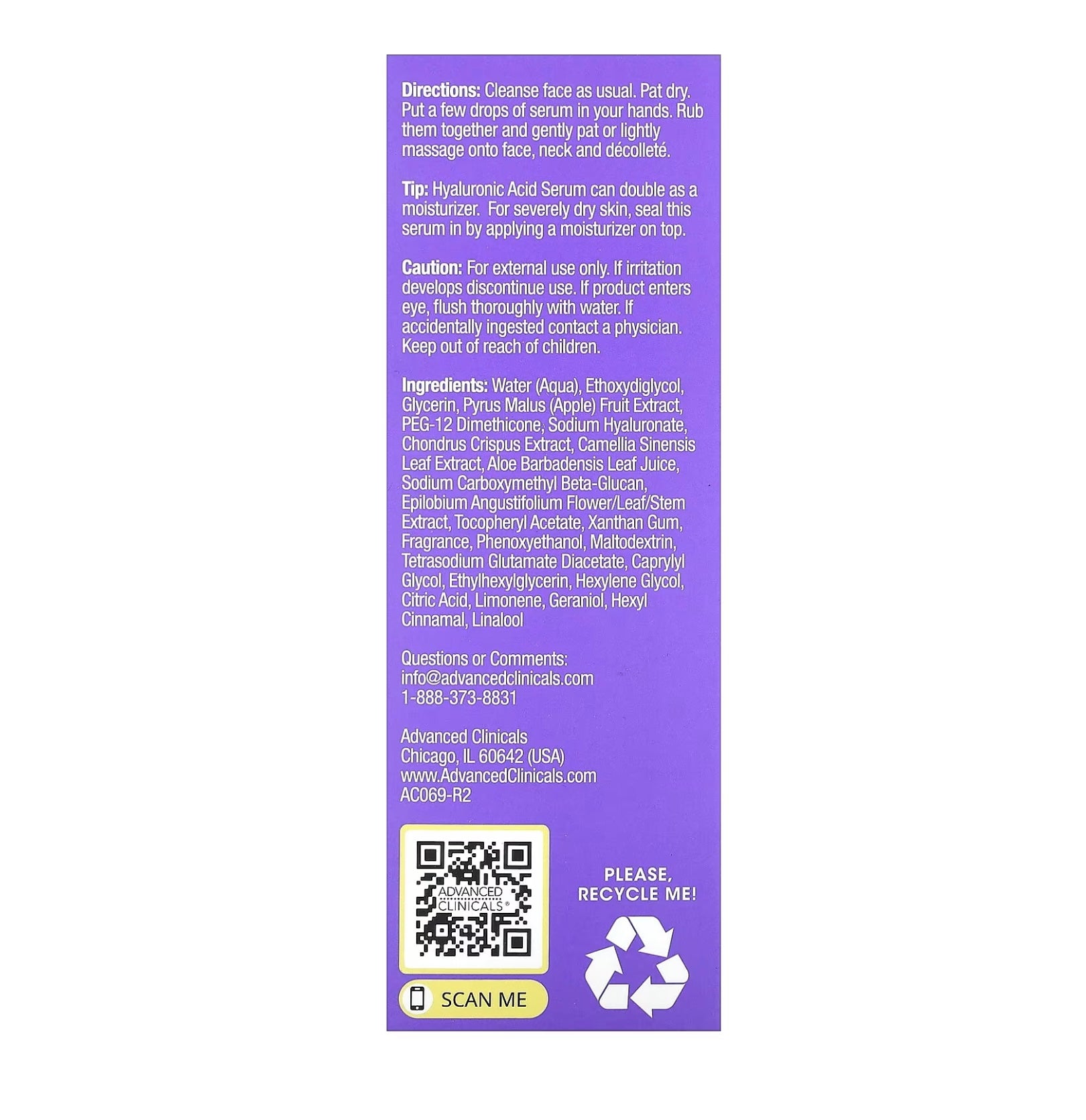 سيروم حمض الهيالورونيك من Advanced Clinicals – Hyaluronic Acid Serum (52 مل)