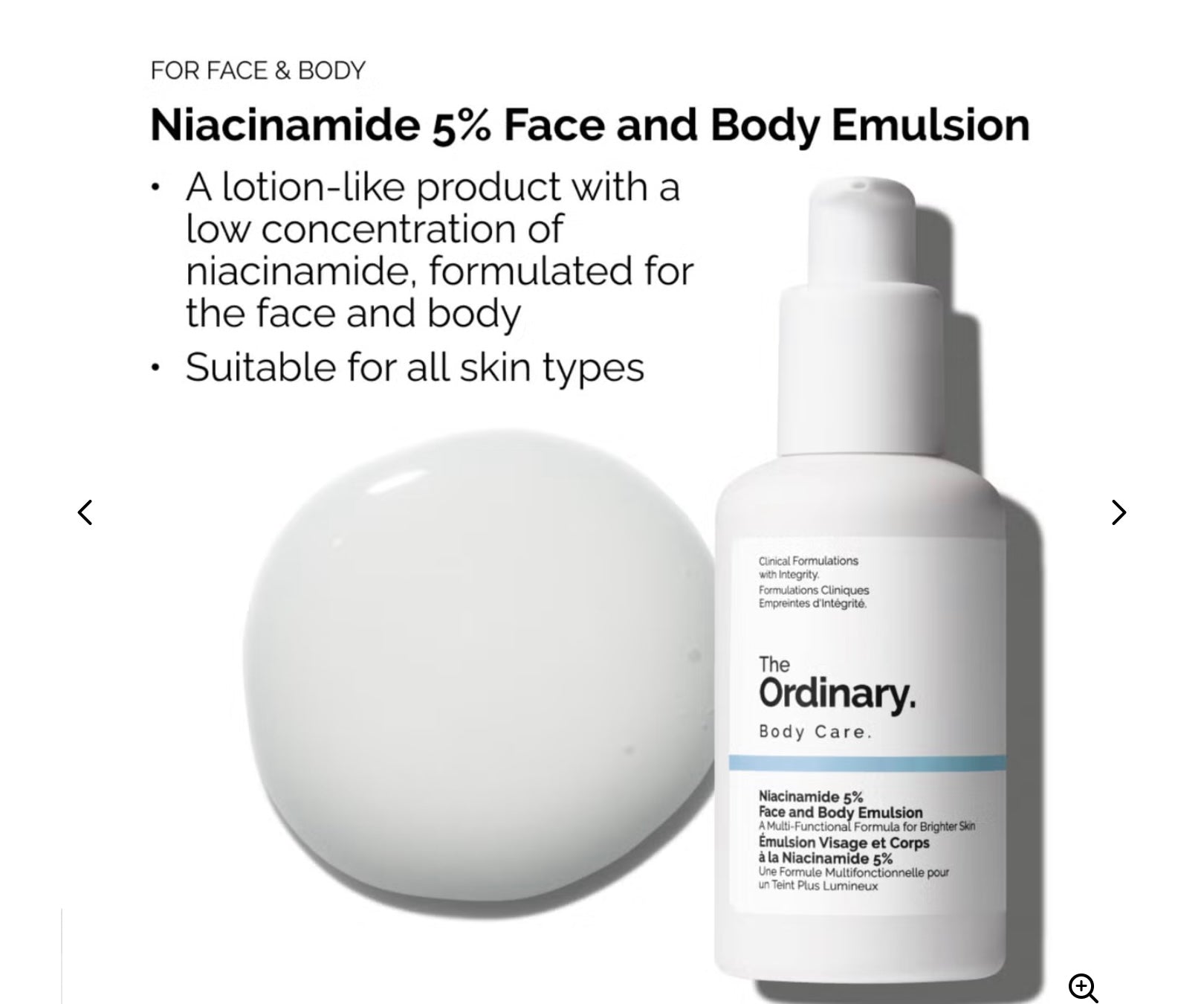 💧إيمولشن النياسيناميد 5% للوجه والجسم – The Ordinary Niacinamide 5% Face and Body Emulsion (100مل)